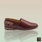 Command presence with Ruby Royals’ Majestic Ornate Collection, where heritage craftsmanship meets modern elegance. The Cherry Brown Lion Mess Pad slip-ons are crafted from genuine leather, designed to exude quiet power and timeless sophistication. Embellished with a hand-embroidered antique-finish lion motif, each pair captures the spirit of royalty, courage, and refined taste.